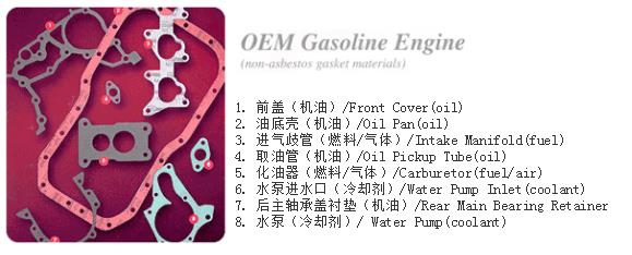 在OEM配套的汽油機(jī)市場中,正確選擇墊片材料選喲對材料的設(shè)計(jì)性能和應(yīng)用的部件結(jié)構(gòu)有充分的了解。最重要的是材料的性能一定要滿足甚至超過發(fā)動機(jī)的應(yīng)用要求。因特費(fèi)斯墊片公司在為用戶選擇和推薦材料產(chǎn)品時,我們不僅對選擇的部件作全面詳盡的分析,并且對選擇的材料進(jìn)行仿真性的測試,為保證材料產(chǎn)品應(yīng)用的可靠性。