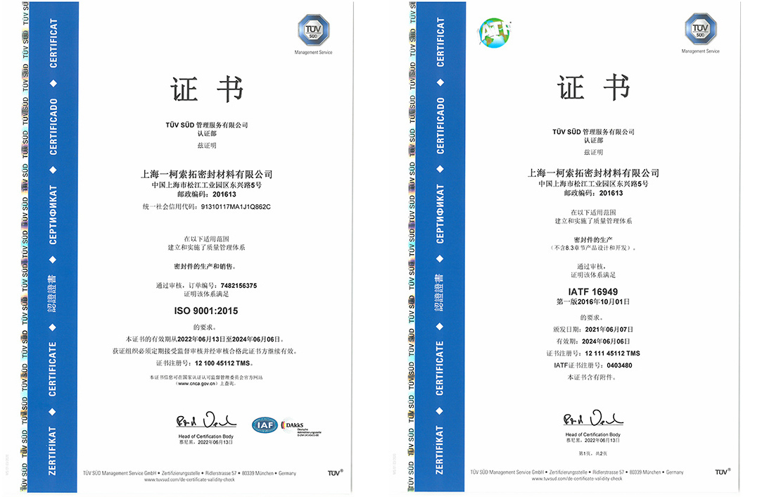 為了提升產(chǎn)品品質(zhì),加強(qiáng)企業(yè)市場(chǎng)競(jìng)爭(zhēng)力。一柯索拓通過TUV復(fù)核,于20226月更新了ISO9001IATF16949證書。