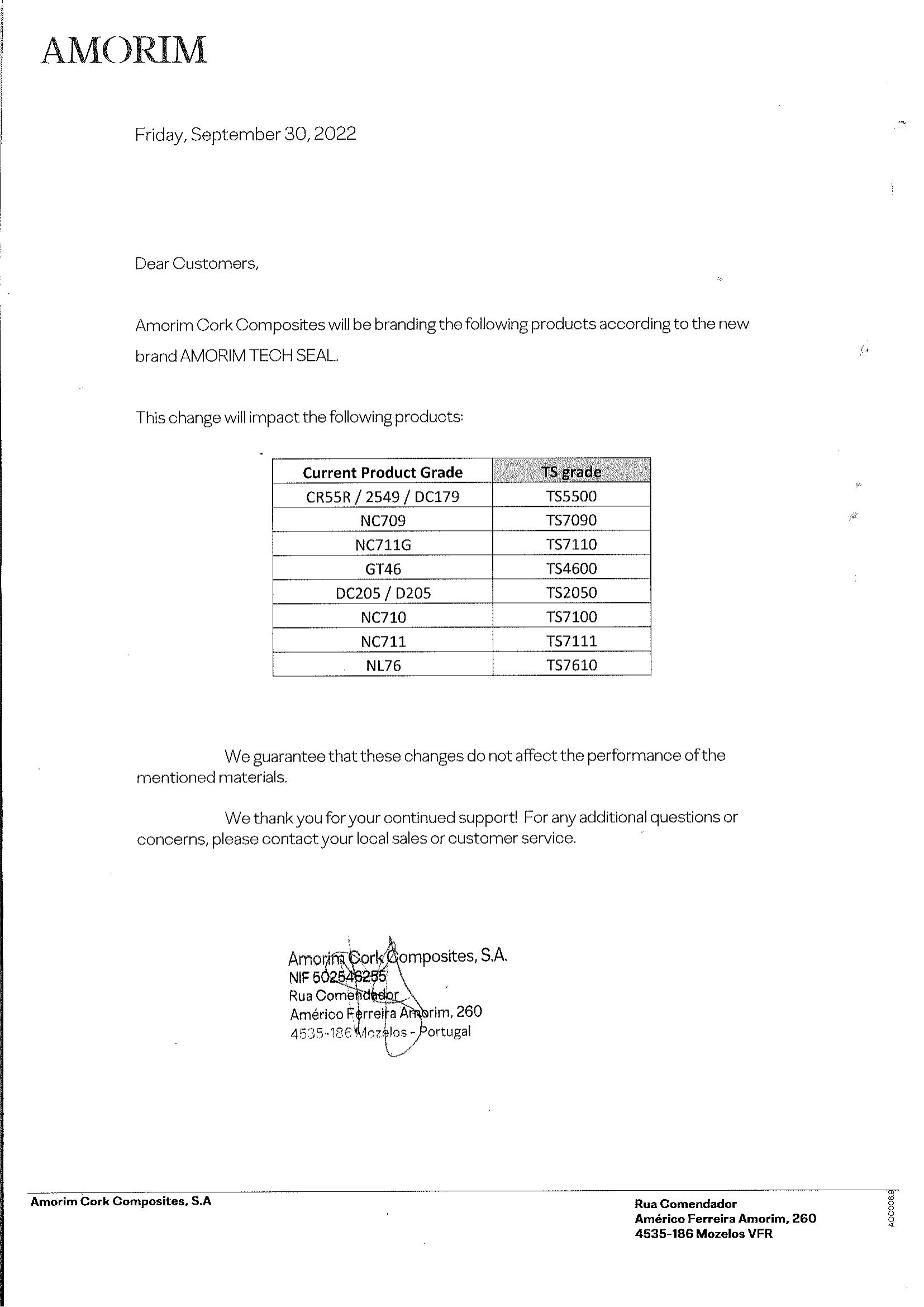 Amorim Cork Composites將按照新的品牌AMORIM TECH SEAL對材料進行推廣。