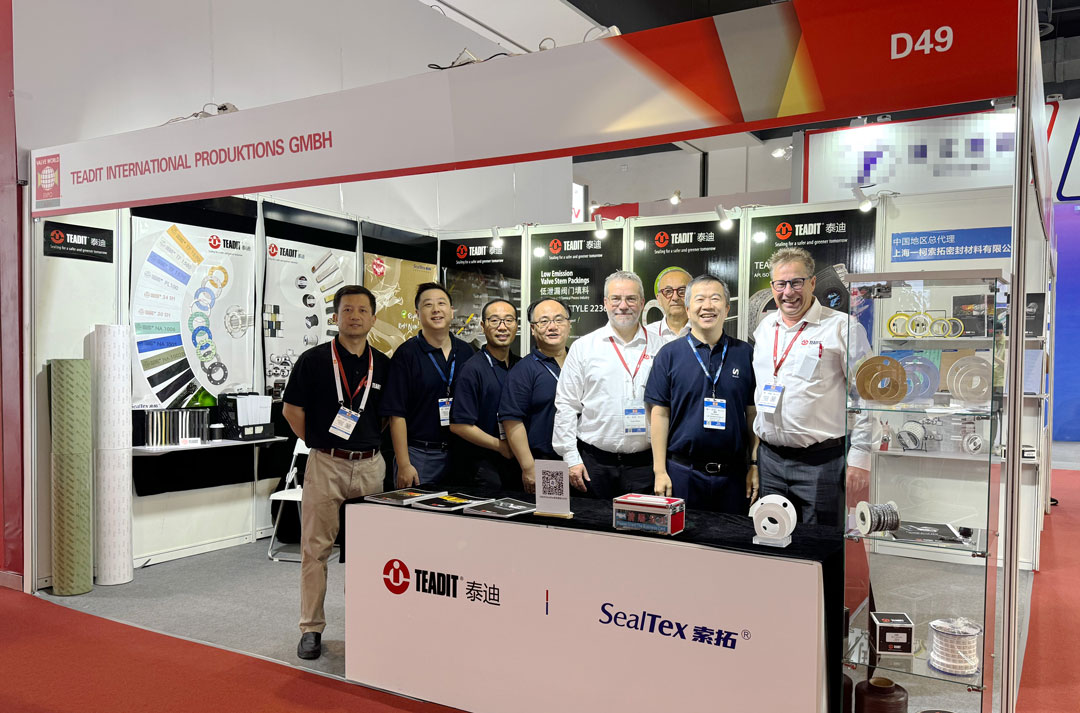 本次展會展出了帶有TEADIT® TAGTM 標(biāo)記的低逸散性可追溯盤根2848,以及API 622 測試平均泄漏率僅為2ppm、ISO 15848-1 密封級別A的2236盤根;多款膨體四氟和改性四氟材料,例如:24SH膨體四氟,TF1570\TF1580\TF1590改性四氟,以及各種符合BAM氧氣測試、PFAS Free,適用于超低溫工況、低泄漏等要求的密封產(chǎn)品。