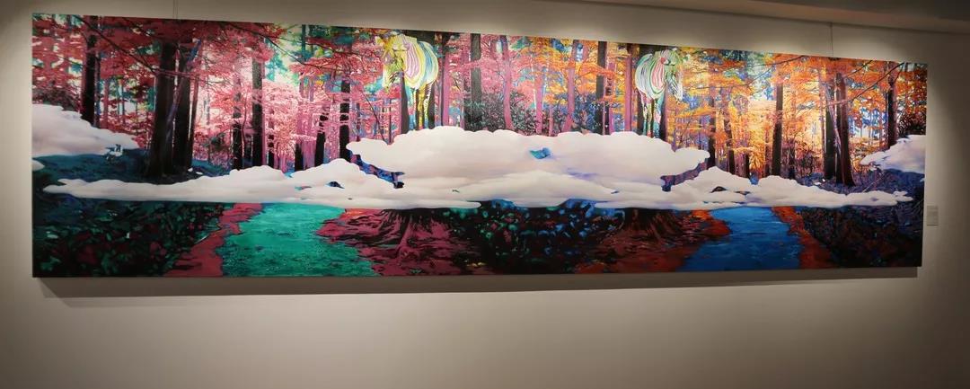 自然比想象更真实,傍晚的夕阳映衬着一片幽静森林,一条弯曲的小路伸向远方,一朵祥云切开地面与森林,一匹带有忧郁眼神的斑马站在祥云上,这种一真一幻的境界也许是我内心深处的写照。