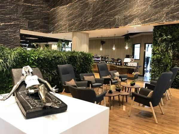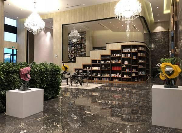 挑高大堂“朱铭雕塑展”人间系列,人与书,空间的流动